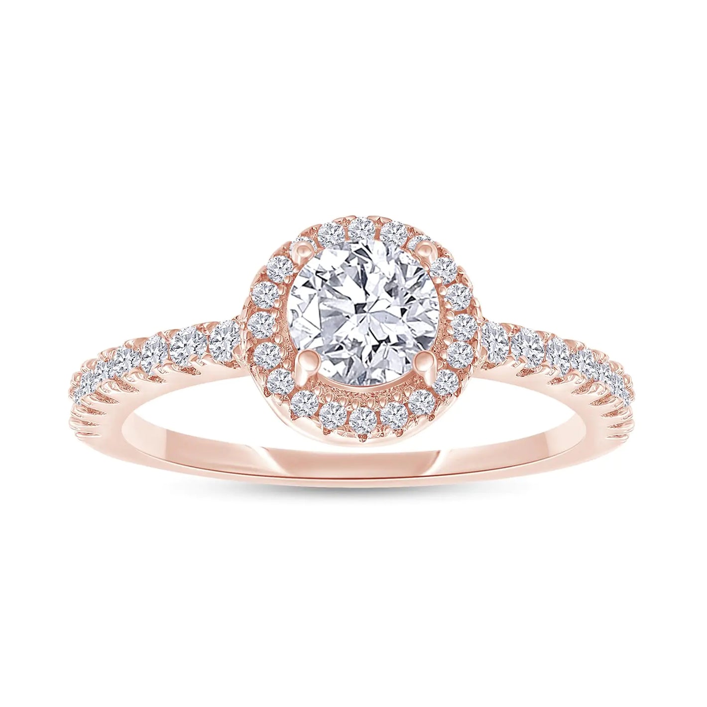 This stunning ring features exquisite 18K rose gold plating, ensuring a beautiful and durable finish. The center stone is a brilliant 5MM moissanite diamond, renowned for its exceptional sparkle and ethical sourcing, making it an eco-friendly choice for any occasion.